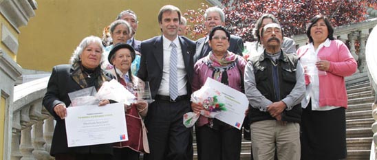 \r\n En una de las terrazas del cerro Santa Lucía en pleno centro de Santiago, el Ministro de Cultura, Luciano Cruz-Coke, encabezó esta mañana la ceremonia de reconocimiento público a los nuevos Tesoros Humanos Vivos del país, cultores de tradiciones de los más diversos rincones.