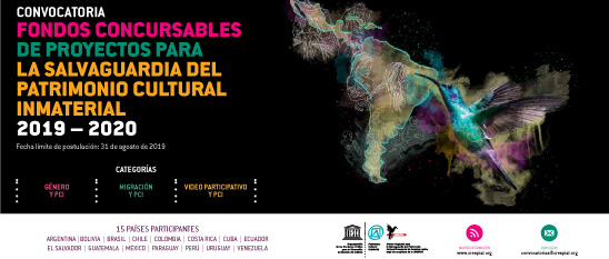 Los Fondos Concursables de proyectos para la salvaguardia del PCI 2019 – 2020, buscan financiar, total o parcialmente, proyectos de iniciativa social vinculados a la salvaguardia del PCI en Latinoamérica de los 15 países miembros del CRESPIAL: Argentina, Bolivia, Brasil, Chile, Colombia, Costa Rica, Cuba, Ecuador, El Salvador, Guatemala, México, Paraguay, Perú, Uruguay y Venezuela.