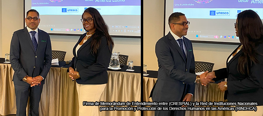 Este jueves 17 de octubre, en el marco del Día Internacional del Patrimonio Cultural Inmaterial, el Centro Regional para la Salvaguardia del Patrimonio Cultural Inmaterial de América Latina (CRESPIAL) y la Red de Instituciones Nacionales para la Promoción y Protección de los Derechos Humanos en las Américas (RINDHCA) dieron un paso trascendental al firmar un Memorándum de Entendimiento.