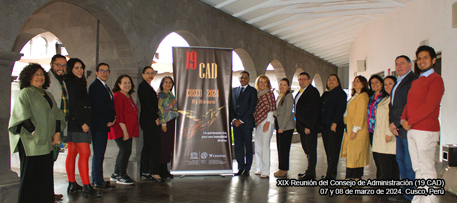 La 19° Reunión del Consejo de Administración (19 CAD) del Centro Regional para la Salvaguardia del Patrimonio Cultural Inmaterial de América Latina (CRESPIAL) se llevó a cabo con éxito en la ciudad de Cusco, Perú en fechas 7 y 8 de marzo del año 2024.