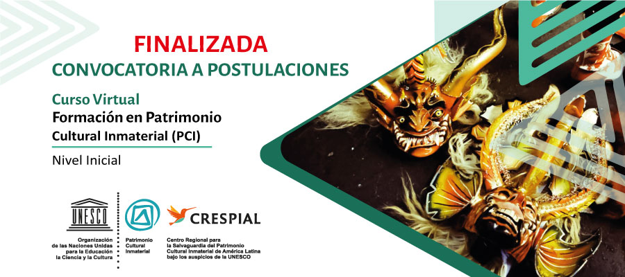 El Centro Regional para la Salvaguardia del Patrimonio Cultural Inmaterial de América Latina – CRESPIAL, agradece a cada uno de los interesados en participar del curso virtual “Curso de Formación en Patrimonio Cultural Inmaterial” nivel inicial, pues demuestra la gran necesidad de redoblar los esfuerzos para democratizar el acceso a la formación en los temas relativos a la salvaguardia del patrimonio cultural inmaterial en América Latina.