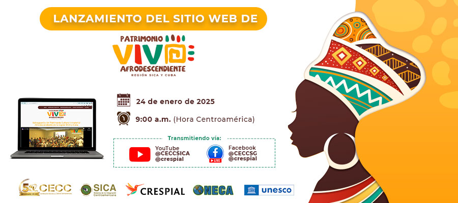 El próximo 24 de enero a las 9:00 a.m. (hora de Centroamérica), el Centro Regional para la Salvaguardia del Patrimonio Cultural Inmaterial de América Latina se complace en anunciar el lanzamiento oficial del sitio web dedicado al Patrimonio Cultural Inmaterial (PCI) Afrodescendiente de la región SICA y Cuba.