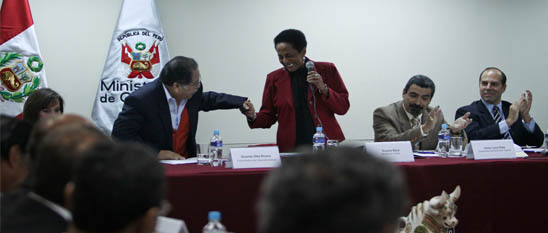 La Ministra de Cultura, Susana Baca, acompañada del Viceministro de Patrimonio Cultural e Industrias Culturales, Javier Luna Elías, y del Viceministro de Interculturalidad, Vicente Otta Rivera, inauguró el Encuentro Nacional de Directores Regionales de Cultura se informó a través de la Sección de Prensa de dicho Ministerio.