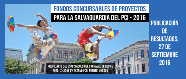 La tercera edición de los Fondos Concursables de proyectos para la salvaguardia del Patrimonio Cultural Inmaterial 2016 organizada por el