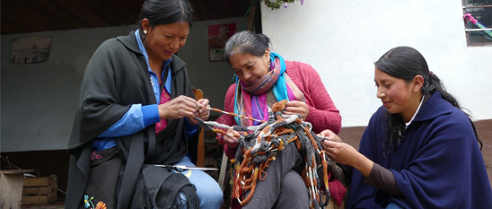 A diario, estas mujeres, acompañadas por sus hijas, tías, abuelas y hasta nietas, se reúnen en un taller para tejer, hilar y diseñar novedosas ruanas, chales, ponchos, chalecos, bufandas, capas, pashminas, abrigos, chumbes y faldas, todas elaboradas a mano con materiales como lana de oveja, algodón y seda natural de gusano.